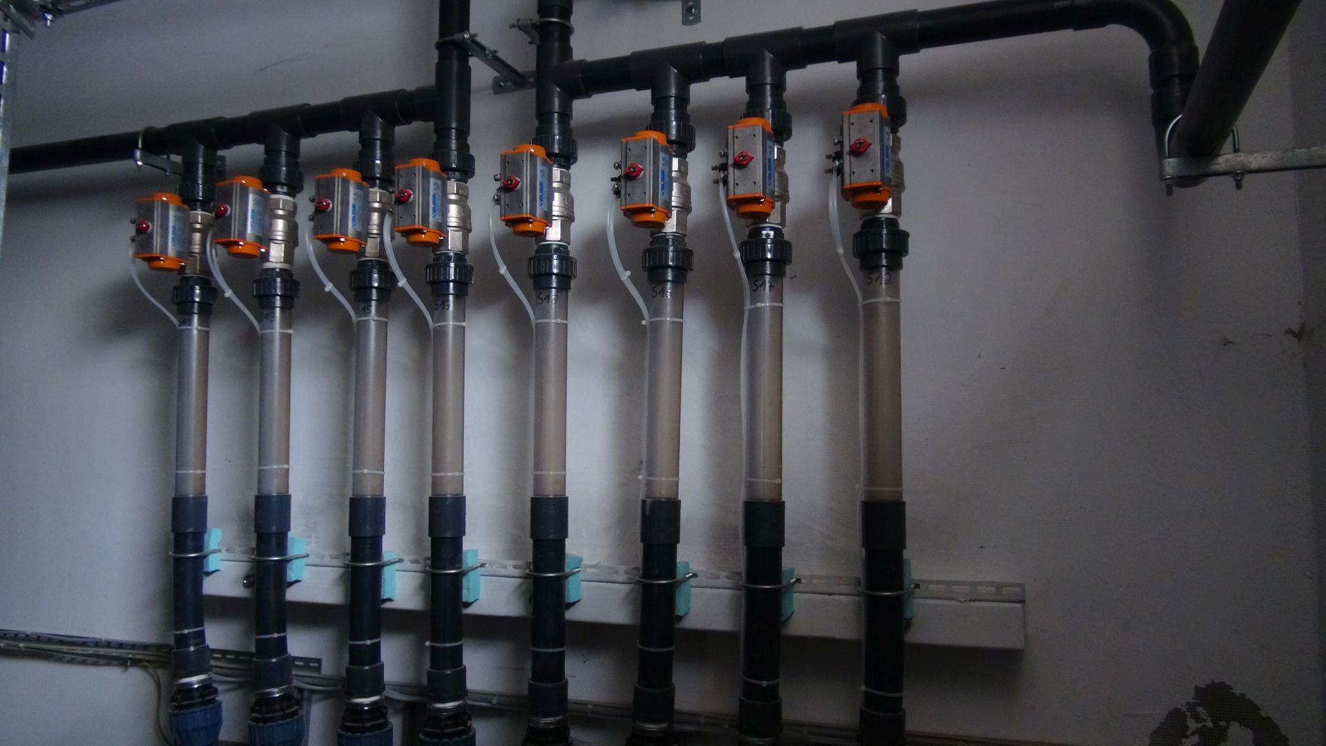 Jeder Anmischtank verfügt über zwei eingebaute Tankreiniger und ein UV-Licht zur Behälterdesinfektion und beschickt jeweils 4 Stichleitungen mit Futter.