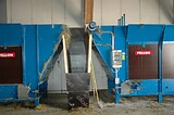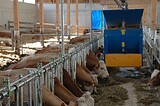 Rindermaststall mit TMR Robot und 2 Vorlagerungsbehältern zum Verfüttern von 2 Futtersorten.