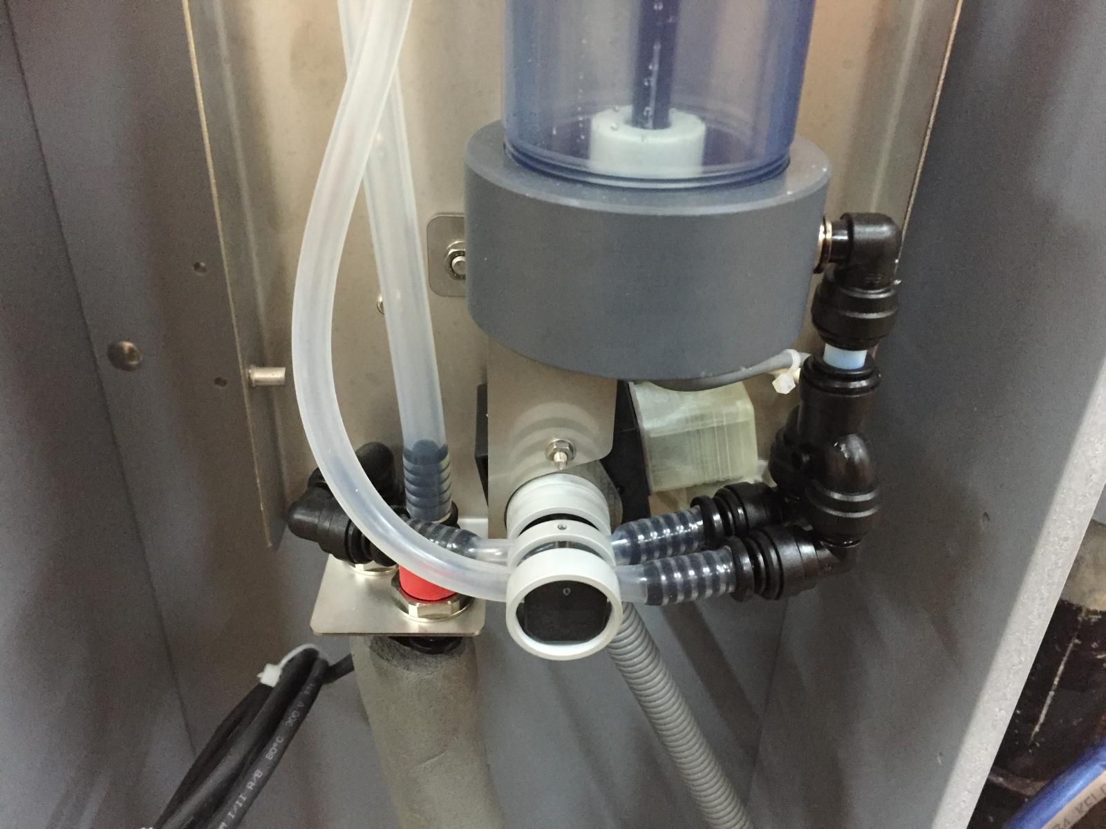 Urban LifeStart milk feeder with 4 stations for 4 animal groups. The stations can be hinged up for cleaning out manure easily with machinery.